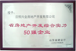 ·2006年4月,山東省建設(shè)廳授予興業(yè)房地產(chǎn)“省房地產(chǎn)開發(fā)綜合實力50強(qiáng)企業(yè)”