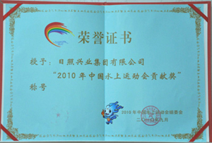 ·2010年9月,授予興業(yè)集團(tuán)“2010年中國水上運(yùn)動(dòng)會(huì)貢獻(xiàn)獎(jiǎng)”稱號(hào)