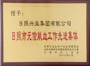 ·2016年6月,興業(yè)集團榮譽“日照市無償獻血工作先進集體”稱號
