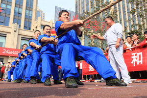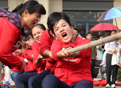 當(dāng)天,來自興業(yè)集團(tuán)各下屬單位的8支代表隊(duì)476名運(yùn)動員精神飽滿地參加了“團(tuán)體跳繩”、“開火車”、“協(xié)作運(yùn)球接力”、“車輪滾滾”、“滾雪球”、“拔河”等團(tuán)體項(xiàng)目的比賽,整個(gè)現(xiàn)場氣氛熱烈,充滿激情,充分展示了“務(wù)實(shí)、創(chuàng)新、拼搏、進(jìn)取、奉獻(xiàn)”的興業(yè)精神和活力、和諧的企業(yè)風(fēng)采。另外,興業(yè)社區(qū)中老年文體活動俱樂部在開幕式上進(jìn)行了太極拳和健身操表演。精彩的開幕式表演和緊張激烈的比賽吸引了眾多市民駐足觀看。