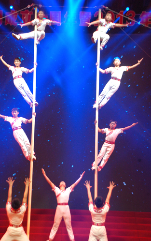 幾名特殊的嘉賓的到來,讓晚會增添了一份的感動,他們是興業(yè)希望小學(xué)的老師和同學(xué)代表以及我集團(tuán)資助的大學(xué)生代表,一句“謝謝興業(yè)集團(tuán)的叔叔阿姨們”,一個鞠躬,一曲《愛的世界》讓全場唏噓動容,他們用自己平實(shí)的語言表達(dá)了對興業(yè)的愛,用自己質(zhì)樸的歌聲表達(dá)對那些勇于承擔(dān)社會責(zé)任的企業(yè)和企業(yè)家們的感恩。十年里興業(yè)的發(fā)展可謂一步一個臺階節(jié)節(jié)高,雜技《節(jié)節(jié)高》驚險刺激,攀出了興業(yè)人的沖天豪氣,場下觀眾驚呼不已,拍手叫絕;著名歌手楊臣剛帶來耳熟能詳?shù)摹独鲜髳鄞竺住、《好兄弟》,將現(xiàn)場帶入溫馨的大合唱。