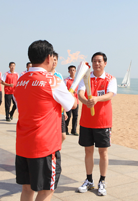 秋高氣爽,風(fēng)和日麗。9月23日上午,日照海濱彩旗飄揚(yáng),萬眾歡騰,主題為“祝福祖國,共享全運(yùn),國泰民安,傳遞和諧”的中華人民共和國第十一屆運(yùn)動會火炬?zhèn)鬟f活動在日照舉行。集團(tuán)董事長丁杰光榮成為全運(yùn)會的火炬手,參加了當(dāng)天全運(yùn)會火炬日照傳遞活動。