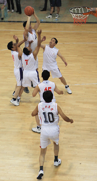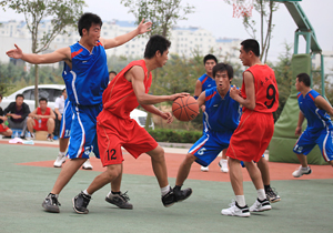 在比賽過程中各支代表隊(duì)都發(fā)揮出了極高的水平,為觀眾奉獻(xiàn)了一場場精彩的比賽。尤其在9月20日上午的交叉賽中,興業(yè)汽配代表隊(duì)與天泰鋼結(jié)構(gòu)代表隊(duì)勢均力敵,比賽中雙方比分交替上升,離結(jié)束還有不到20秒時(shí),汽配代表隊(duì)61:58領(lǐng)先3分并持有球權(quán),此時(shí)汽配隊(duì)員的心理感覺穩(wěn)操勝券,一個(gè)不經(jīng)意的走步把球權(quán)送給對手,離結(jié)束不到2秒,鋼構(gòu)中鋒馬沖順勢強(qiáng)攻,一記精準(zhǔn)的3分遠(yuǎn)投, 將比分追成61平,使比賽拖進(jìn)加時(shí)。在加時(shí)賽中,汽配中鋒崔冰連續(xù)中投得手,興業(yè)汽配代表隊(duì)最終以73:65的比分完勝鋼構(gòu),躋身本屆籃球比賽的冠、亞軍決賽。因?yàn)樘鞖庠颍?月20日下午的半決賽、決賽和驥翼組籃球表演賽改在日照一中室內(nèi)籃球場舉行。半決賽、決賽異常激烈,特別是在興發(fā)和汽配之間進(jìn)行的決賽,展示了興業(yè)集團(tuán)籃球的實(shí)力和水平,興發(fā)隊(duì)員們一次次嫻熟的配合,一個(gè)個(gè)精彩的扣籃,不時(shí)獲得現(xiàn)場觀眾的陣陣喝彩和掌聲。集團(tuán)驥翼隊(duì)與興發(fā)驥翼隊(duì)的籃球表演賽同樣上演了群雄大戰(zhàn),集團(tuán)驥翼隊(duì)在王建國總經(jīng)理帶領(lǐng)下,抗拒了體力不足,堅(jiān)持打滿全場,最終以44:44的比分和興發(fā)驥翼隊(duì)握手言和(因?qū)俦硌葙惒辉偌訒r(shí)),也宣告興業(yè)集團(tuán)第五屆職工運(yùn)動會籃球比賽鳴金收兵。